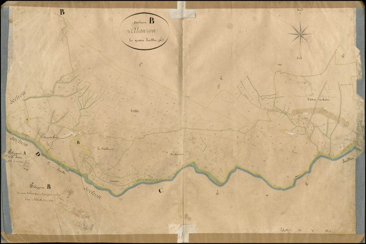 Section B4, Alauzon. Saint-Jean (hameau de), Gaveylis (des) ou Tourniyaires (des) ou Sias (hameau de) (agrandissements).