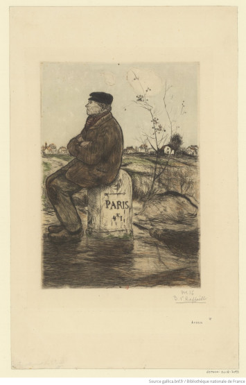 Le cantonnier sur la borne, gravure de Jean- François Raffaëlli, datée de 1904 (source Gallica/BNF)