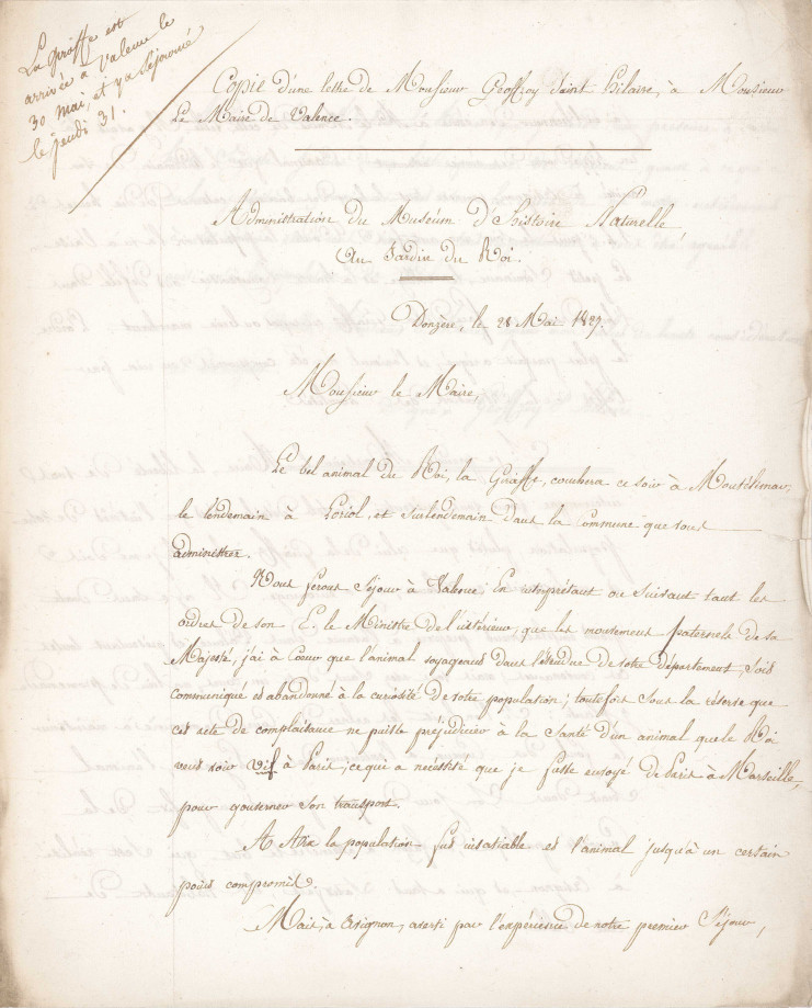 Copie d'une lettre de monsieur Geoffroy Saint Hilaire à monsieur le maire de Valence (1 E 301)