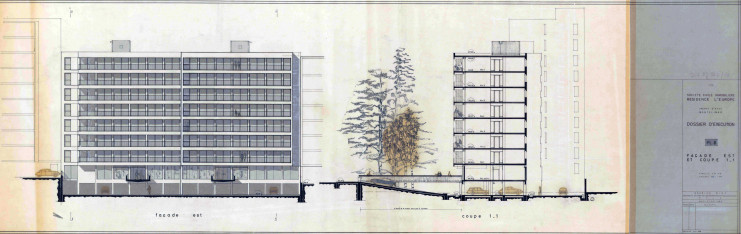 Plan et coupe de la façade Est de la résidence l'Europe à Montélimar - 317 J 962