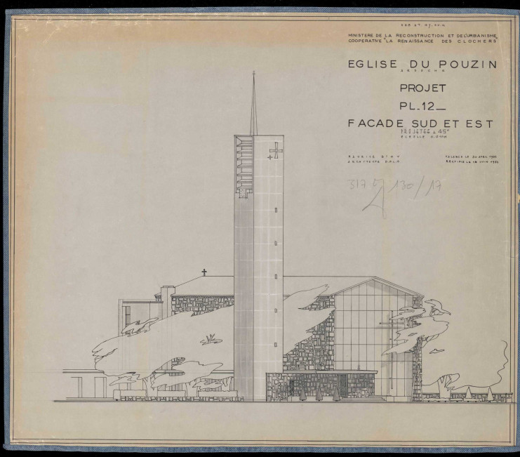 Vue de l'église Sainte-Madeleine au Pouzin (Ardèche) - 317 J 130