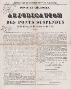 Plan d'élévation du pont suspendu entre Eymeux et le hameau des Fauries (3 S 47)