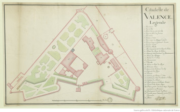Plan de la citadelle de Valence vers 1780 (image Gallica/Bnf)