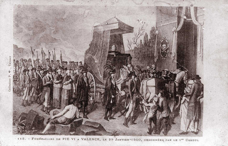 Reproduction d'une gravure représentant les funérailles de Pie VI, le 29 janvier 1800 à Valence (16 Fi 175)